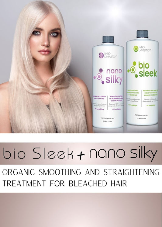 f you’ve been searching for a hair treatment that can transform bleached, damaged hair into sleek, healthy, and manageable strands, look no further. Nano Lamination is proud to introduce our revolutionary combination treatment—90% Bio Sleek and 10% Nano Silky. Specially formulated for bleached hair, this treatment delivers stunning, long-lasting results that repair and straighten hair without causing further damage.